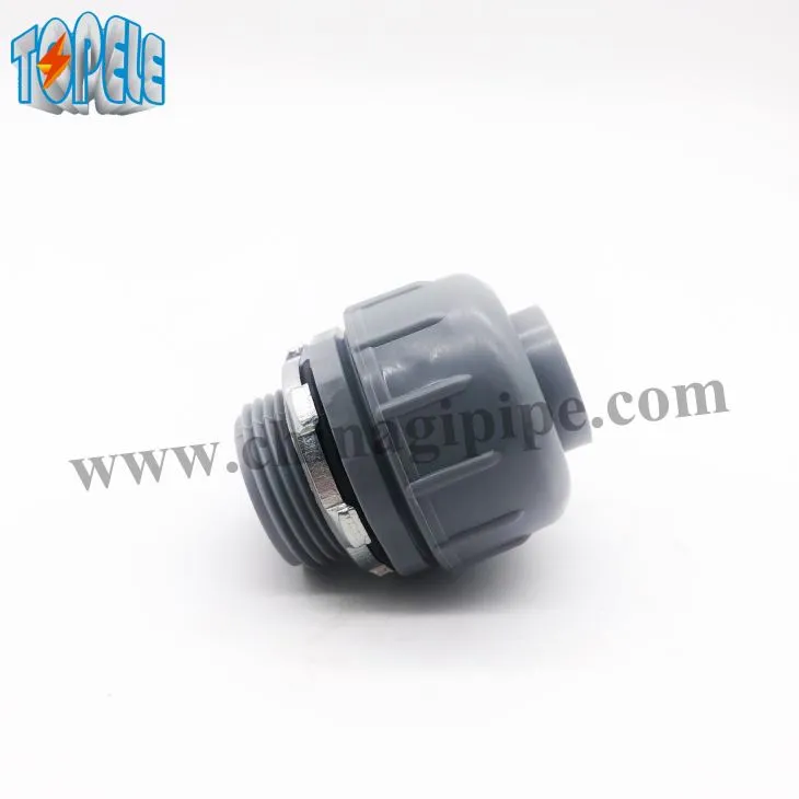 Les connecteurs de conduit en PVC droit DE TOPELE Liquid Tight sont fabriqués avec un conduit étanche liquide non métallique. Il n’y a pas de filetage de conduit ou de tubes requis. Les connecteurs TOPELE donnent un joint liquide supérieur et retirent la force.